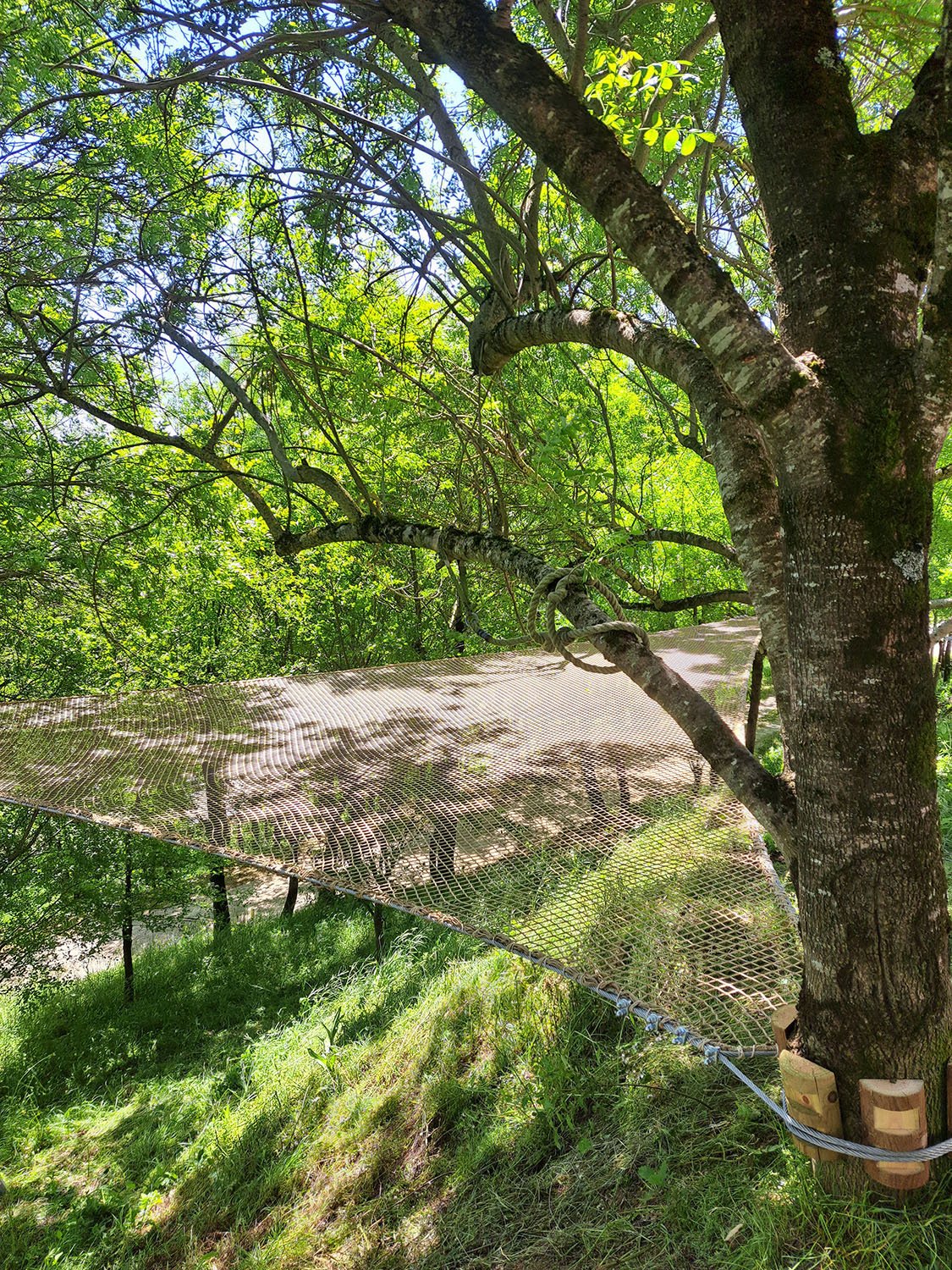 Dans une pente arborée, près du jardin de la grande villa cachée dans les bois, un filet hamac pour toute la famille 🌿